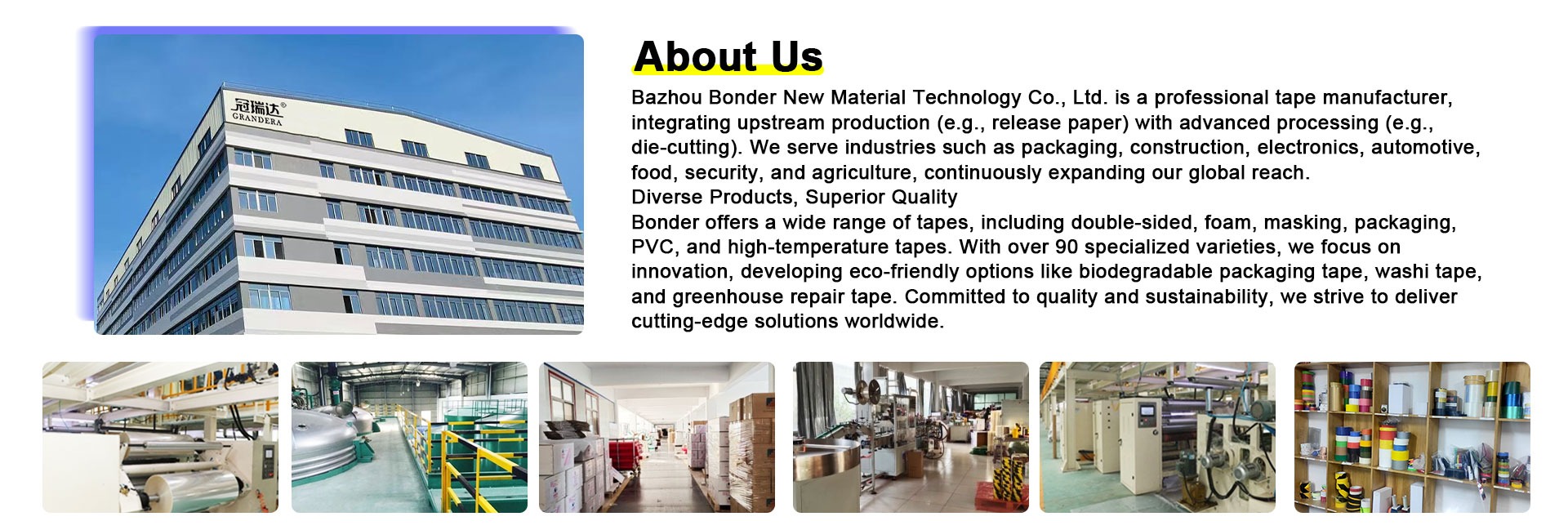 Productos principales:Cinta de embalaje, cinta de doble cara, cinta de espuma, cinta de papel de aluminio, cinta de electricista